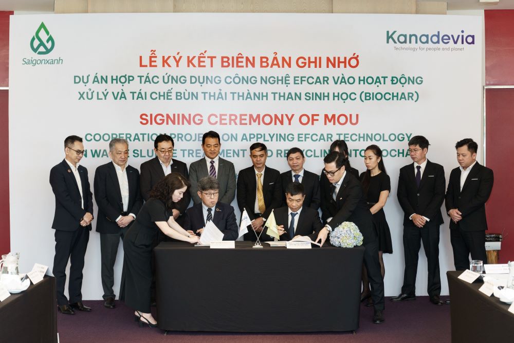Ngày 11.2, Công ty TNHH Công nghệ sinh học Sài Gòn Xanh và Tập đoàn Kanadevia (Nhật Bản) ký kết biên bản ghi nhớ hợp tác trong dự án hợp tác ứng dụng công nghệ EFCAR vào hoạt động xử lý và tái chế bùn thải thành than sinh học (biochar) tại nhà máy xử lý bùn thải Sài Gòn Xanh.
